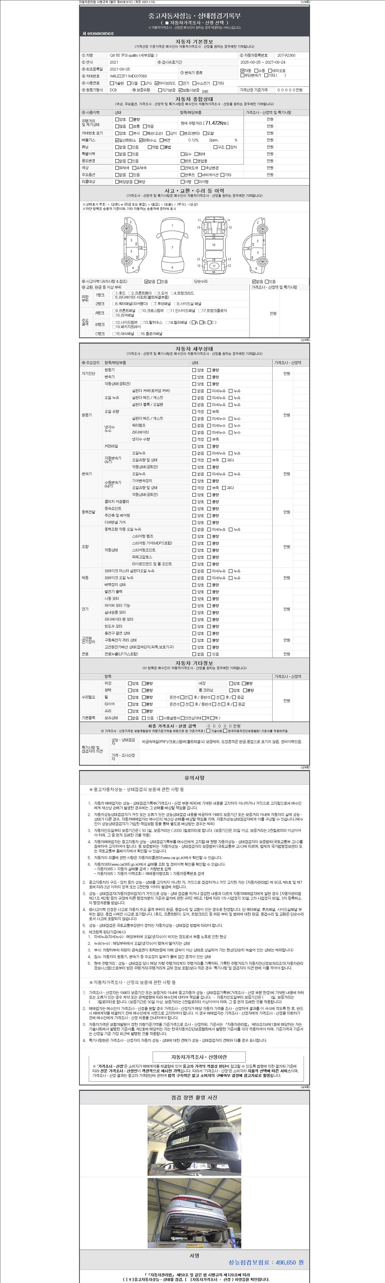 - 2. 차량 등록증이나 성능점검지 등을 상담자에게 요청및 확인하시고 사전에 미리 점검 하시기를 권유드립니다.